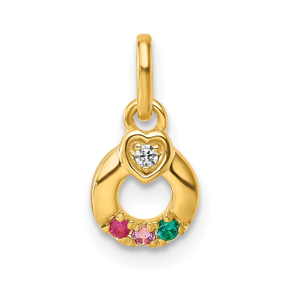 14k Dia Heart w/ 3 Birthstone Mother’s Circle Pendant Semi-Mount