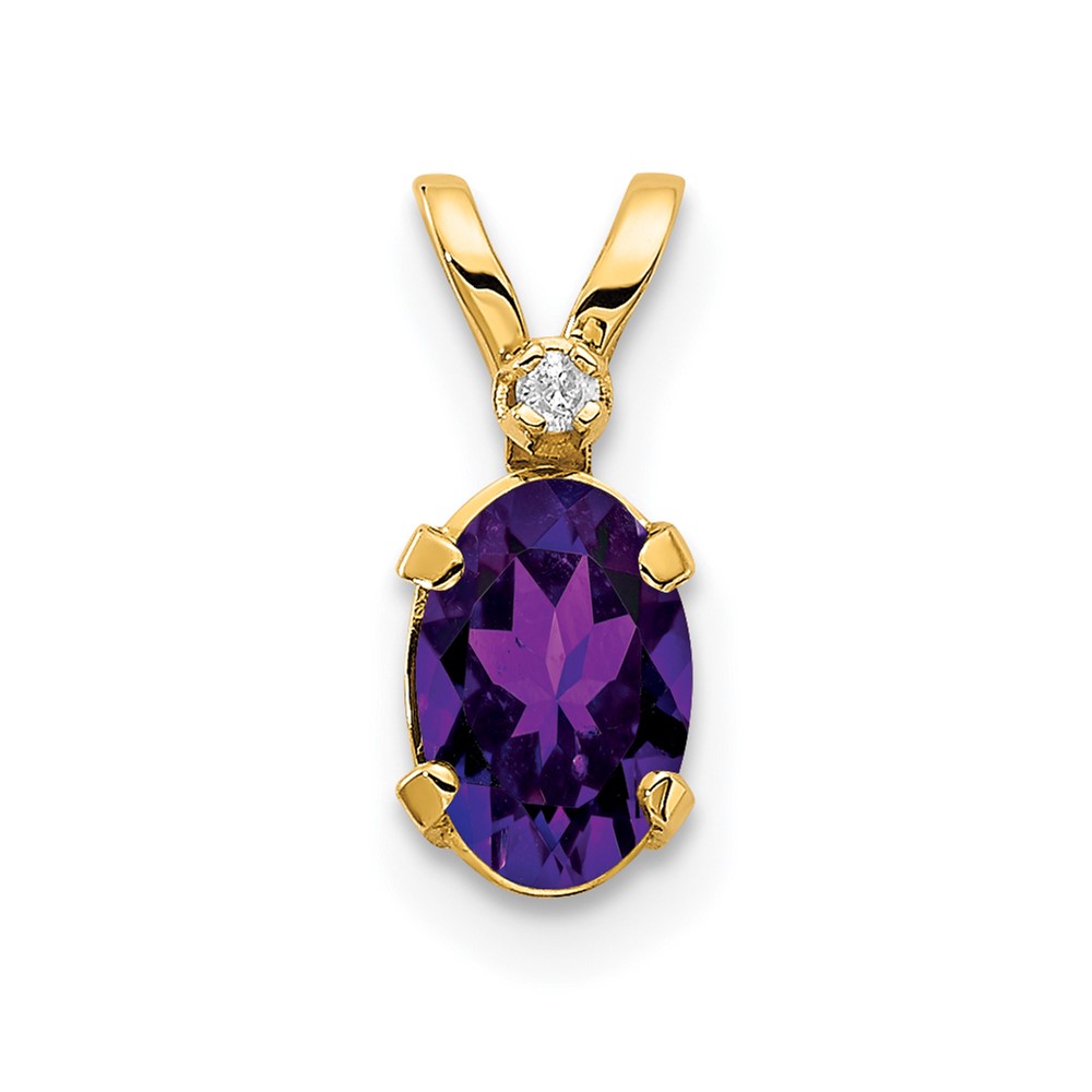 14k Diamond and 6×4 Oval February/Amethyst Birthstone Pendant