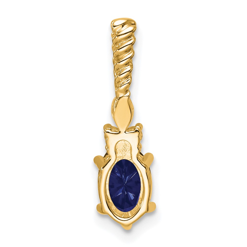 14K Diamond and 7×5 Oval September/Lab Created Sapphire Twisted Chain Slide