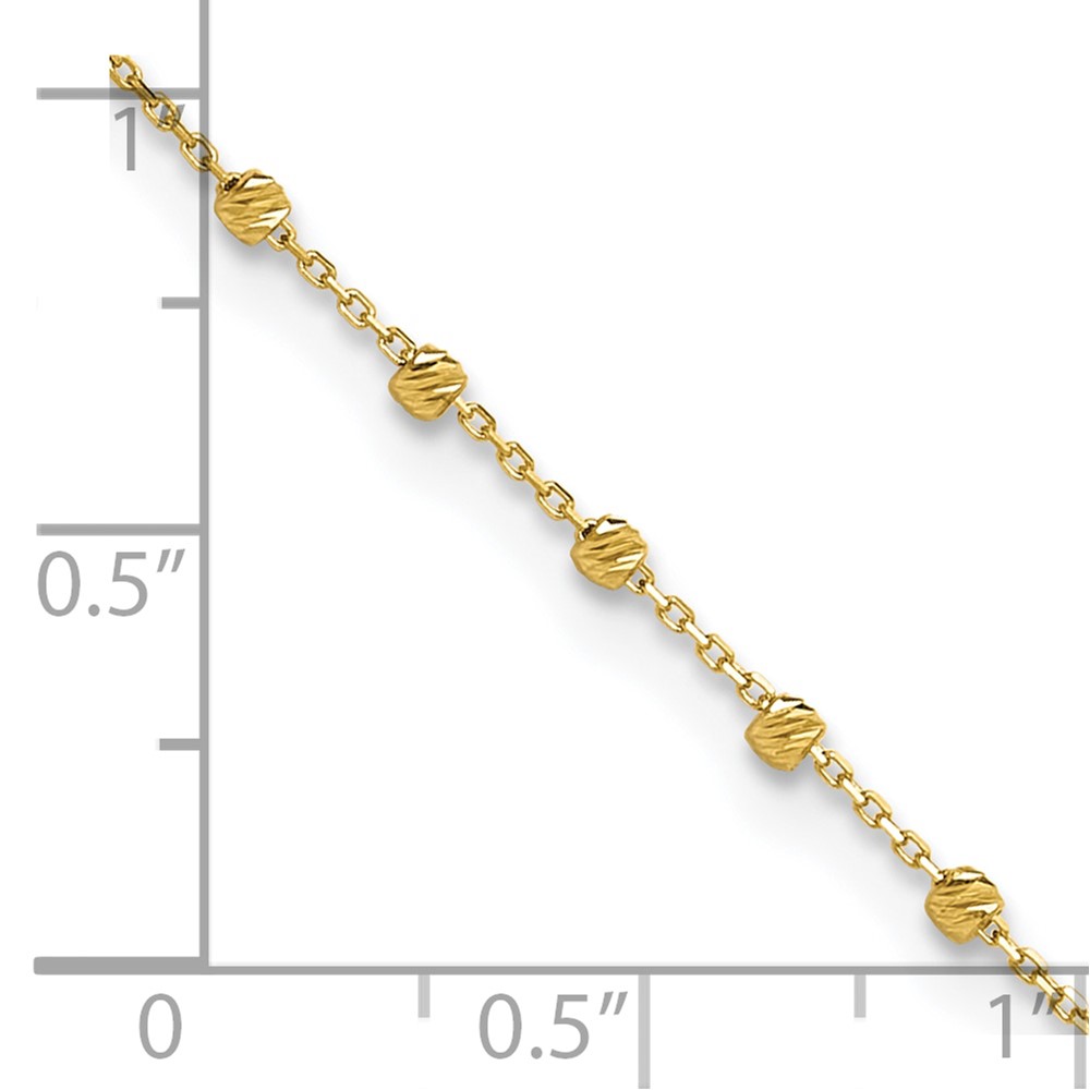 14K Diamond-cut Bead and Chain Plus 0.Extender – Total 9.Anklet