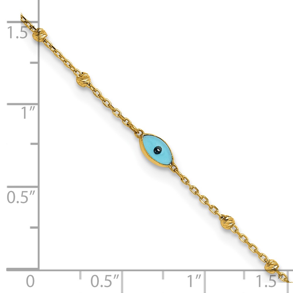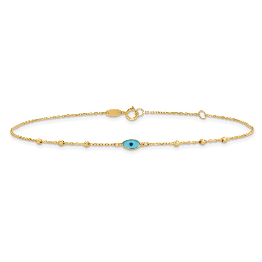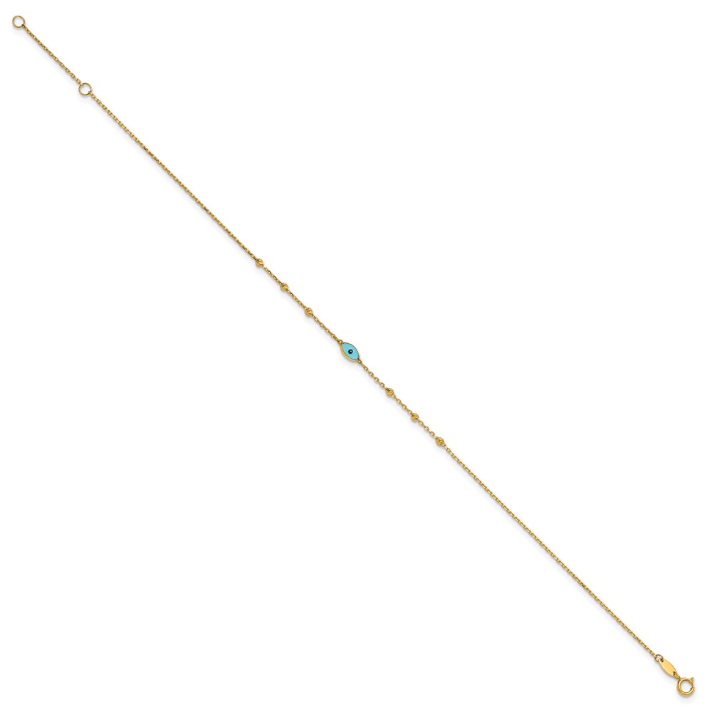 14k Diamond-cut Bead Stations Blue Glass Evil Eye Plus Extender – Total Anklet