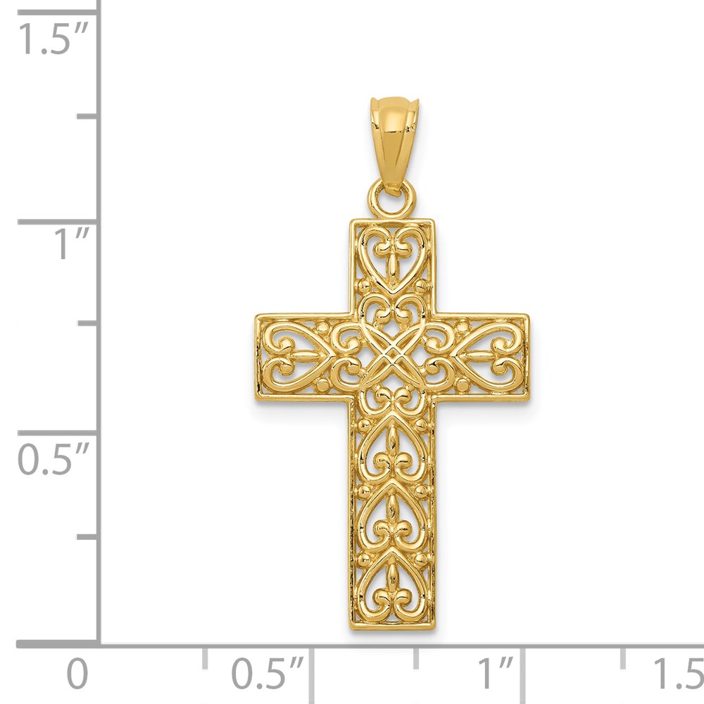 14k Diamond-cut Filigree Cross Pendant