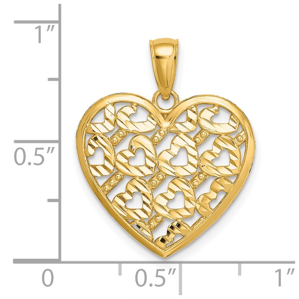 14K Diamond-cut Heart Pattern On Heart Charm