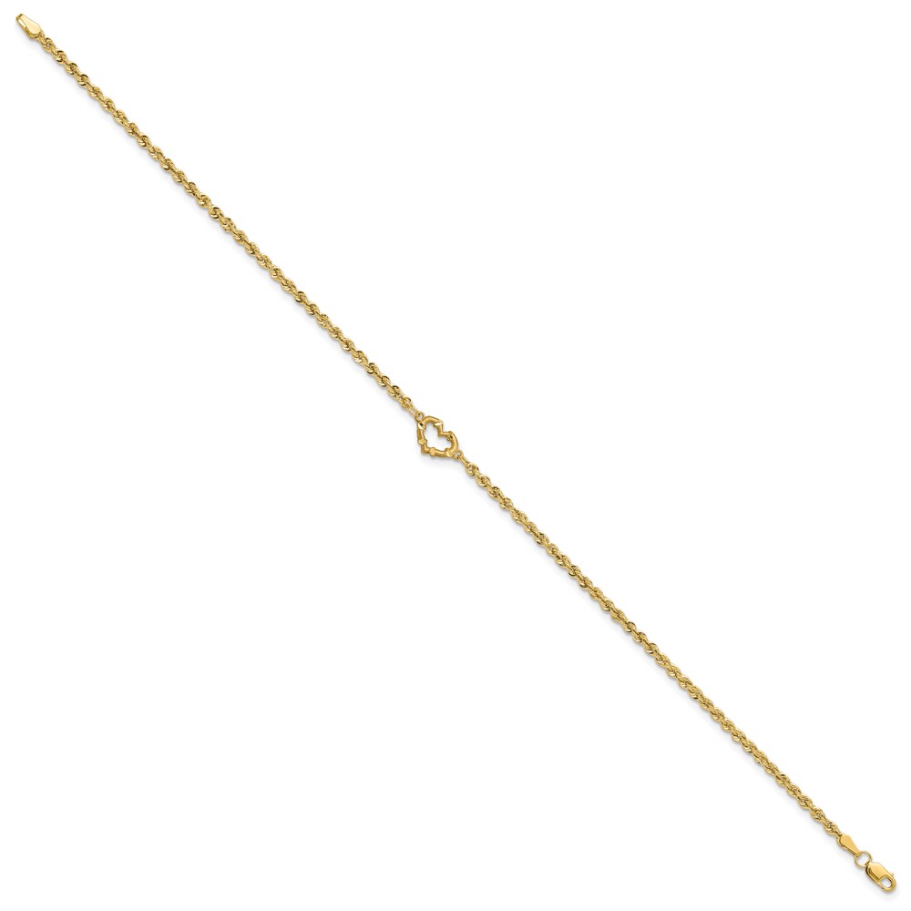 14k Diamond-cut Open Heart and Rope Chain Anklet