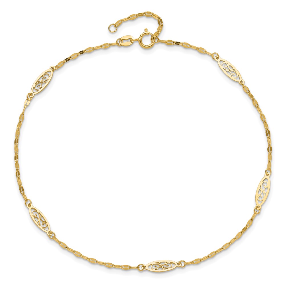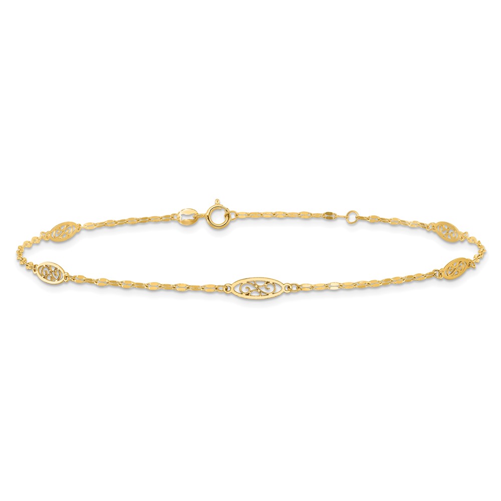 14K Fancy Filigree Link 5-Station Plus Extender – Total Anklet