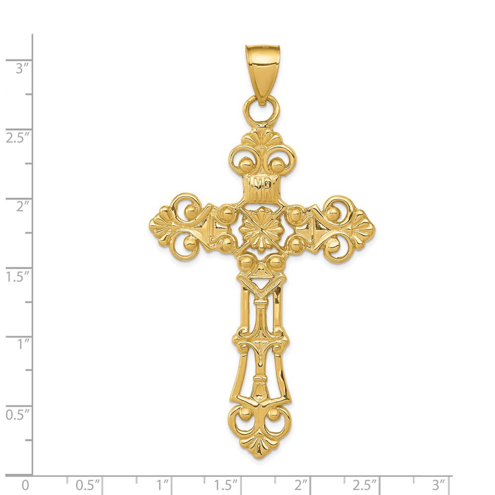 14k Fleur De Lis Large Cross Pendant