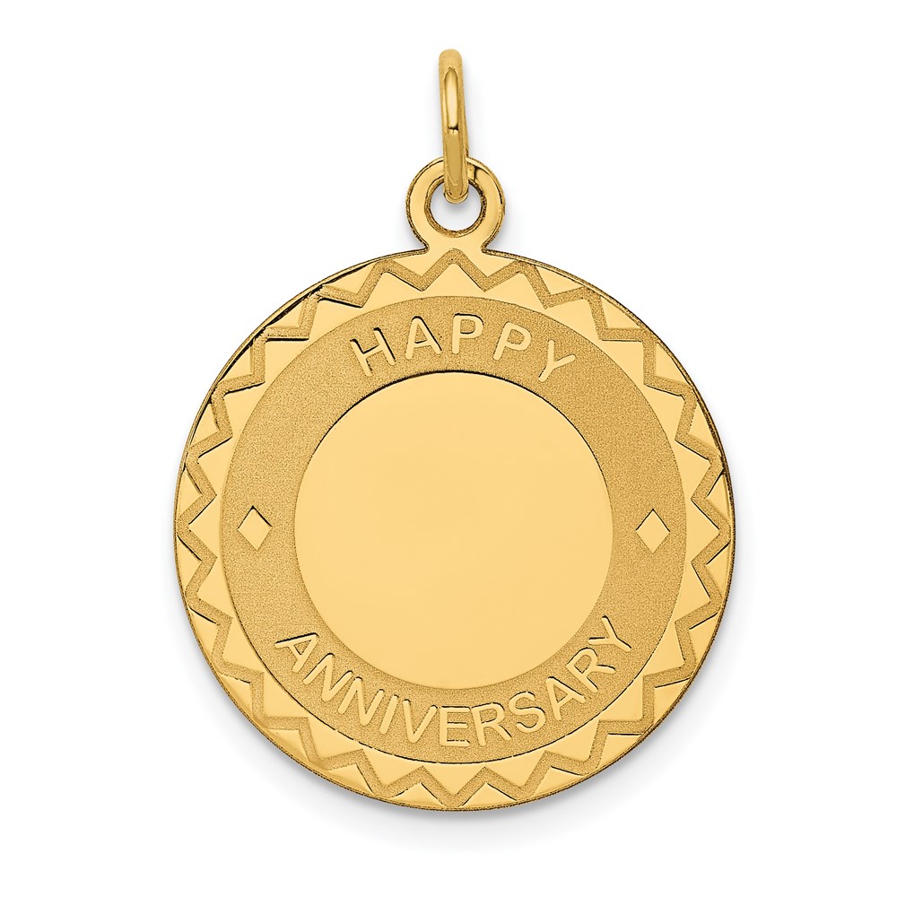 14K HAPPY ANNIVERSARY with Hearts 20mm Engravable Disc Charm
