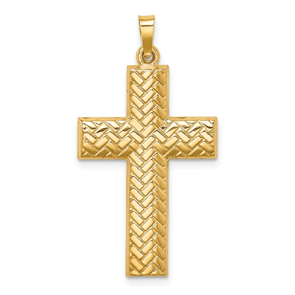 Be the first to review “14k Hollow Polished Basketweave Design Latin Cross Pendant” Cancel reply