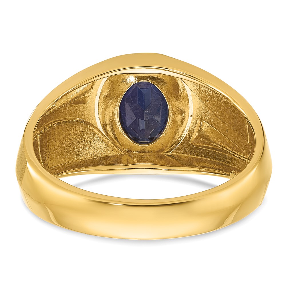 14k IBGoodman Men’s Created Sapphire and Diamond Satin Complete Ring