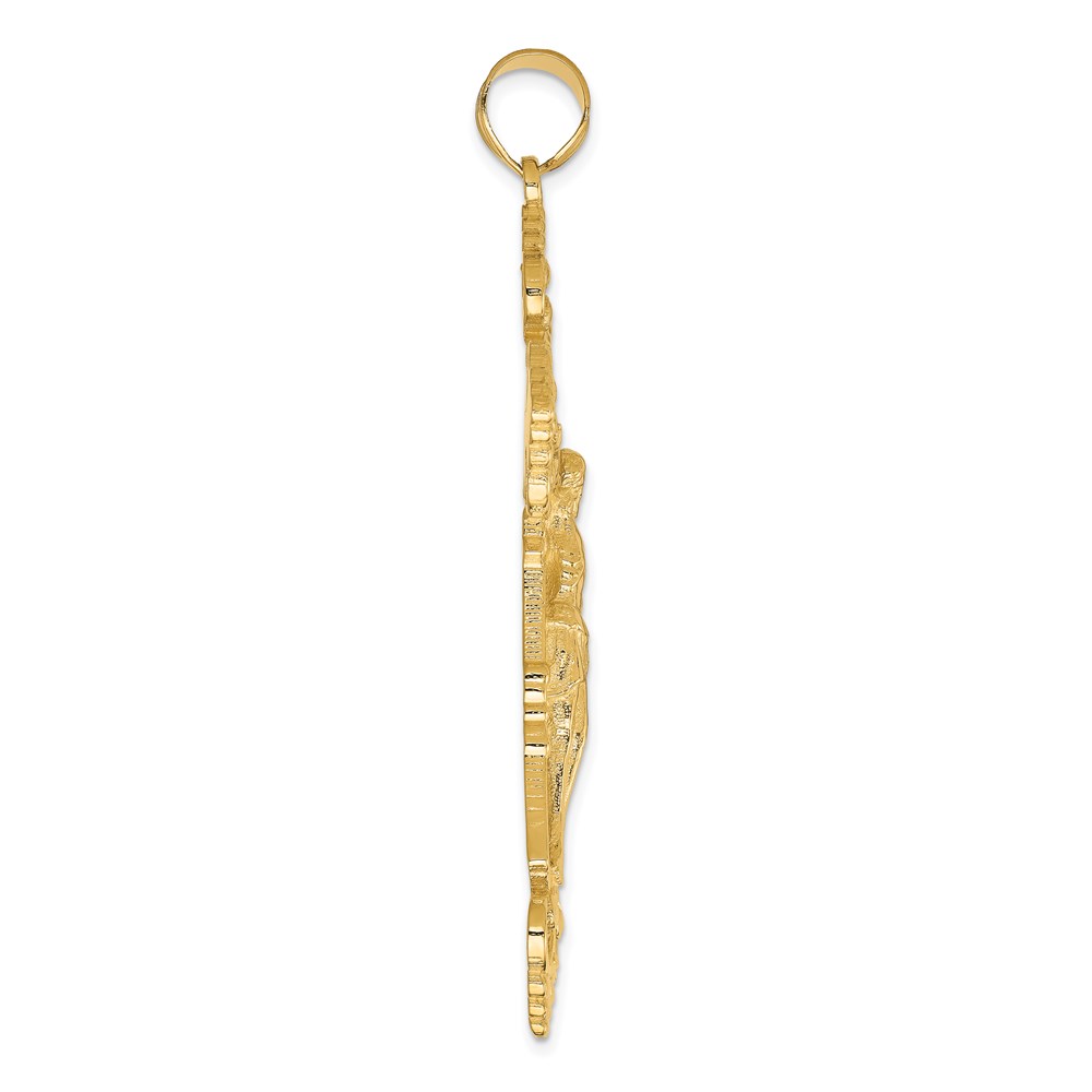 14k INRI Fleur De Lis Crucifix Pendant