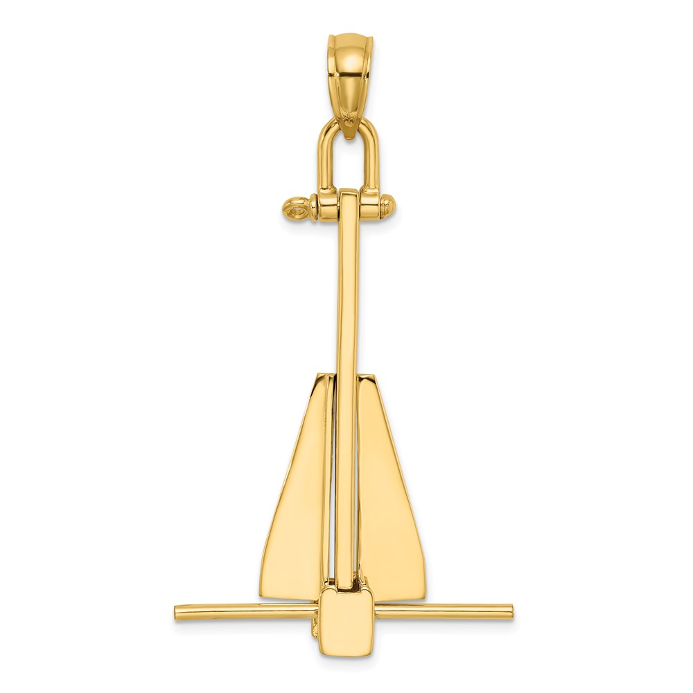 14K Large 3-D Fluke-Style Anchor with Moveable Fins Pendant