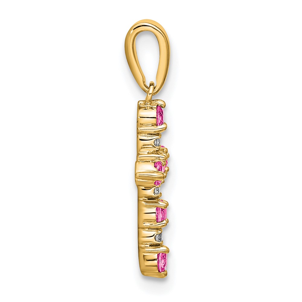 14k Pink Tourmaline and Diamond Cross Pendant