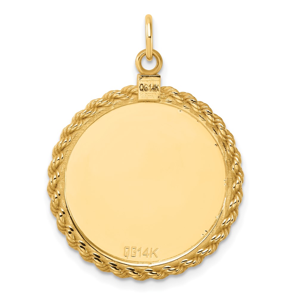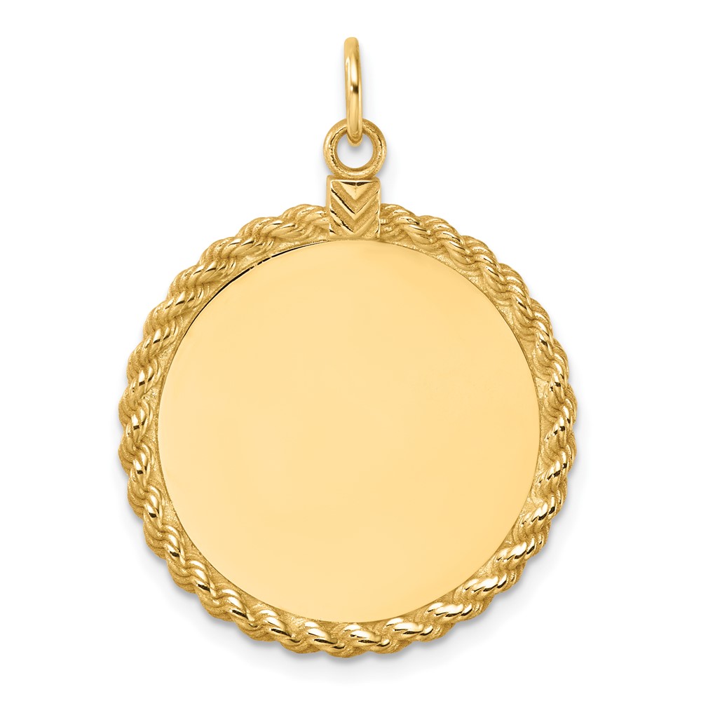 14k Plain .013 Gauge Round Engravable 24.9mm Disc with Rope Edge Charm