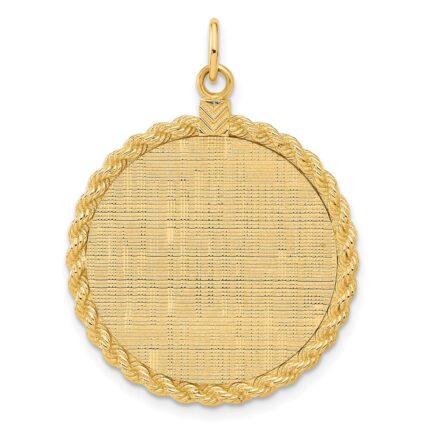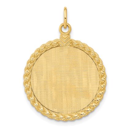 14k Plain .013 Gauge Round Engravable 34x28mm Disc with Rope Edge Charm
