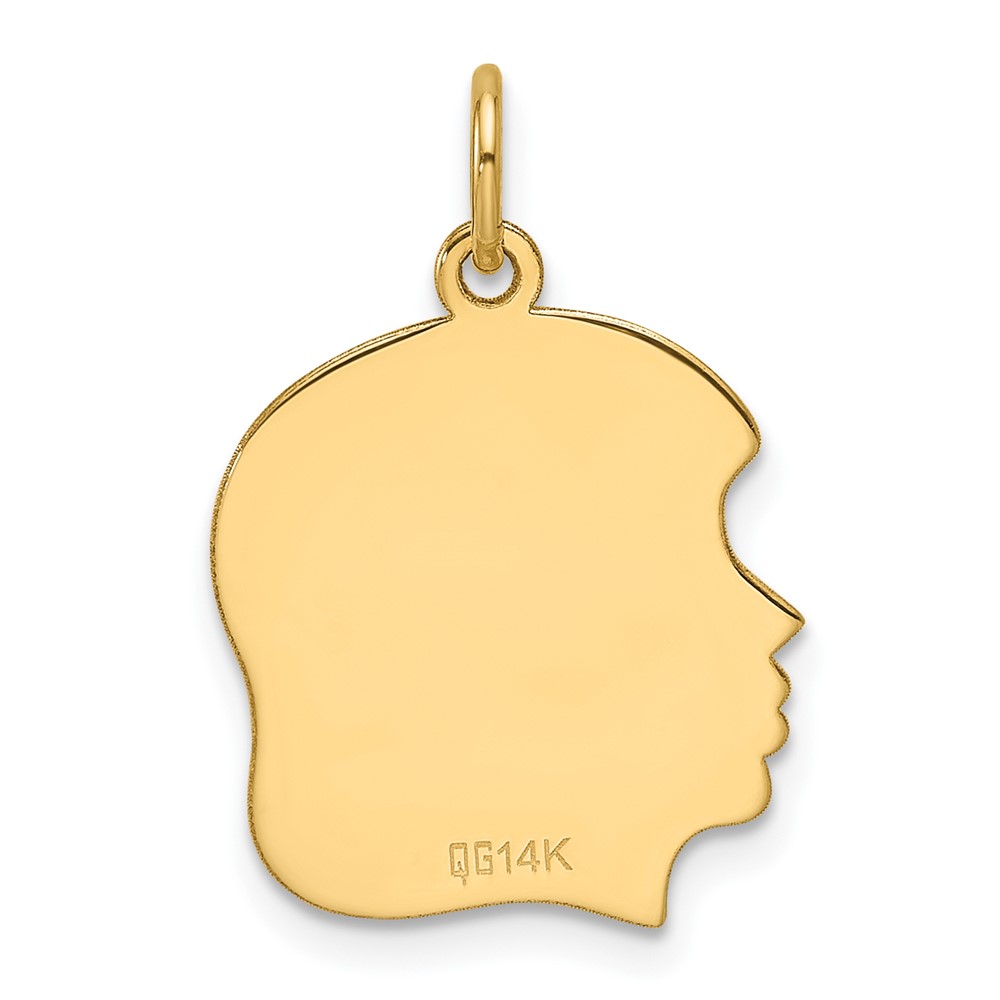 14k Plain Medium .013 Gauge Facing Left Engravable Girl Head Charm