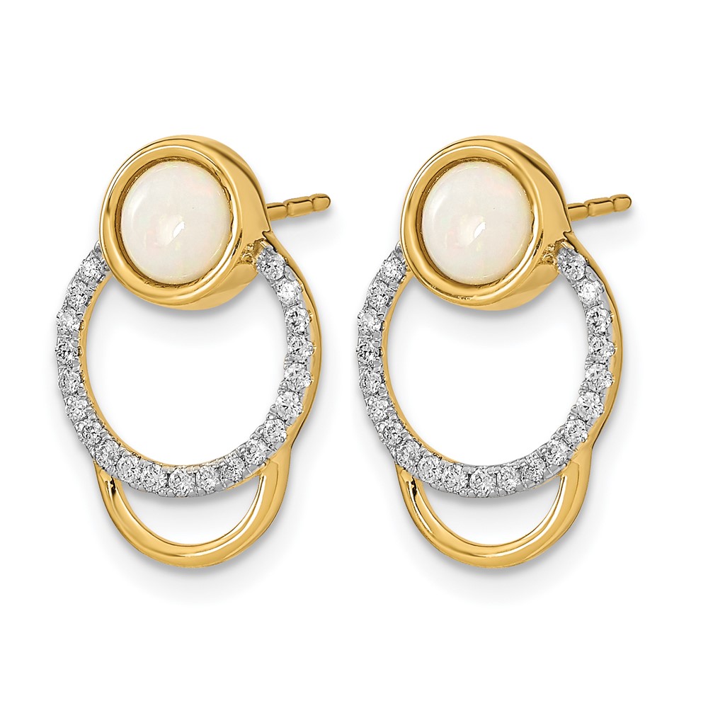 14k Polished 1/5 carat Diamond and Opal Circle Post Earrings