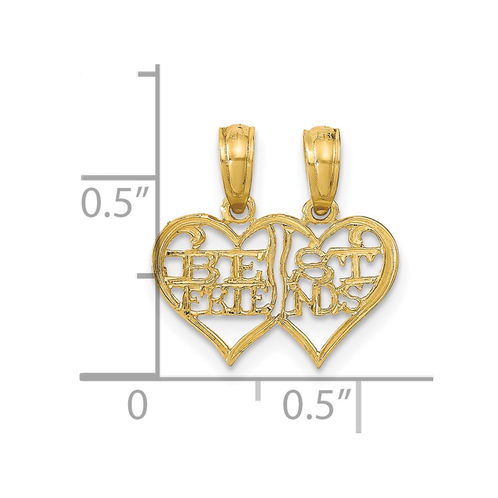 14K Polished 2-Piece Break-Apart BEST FRIENDS Hearts Pendant