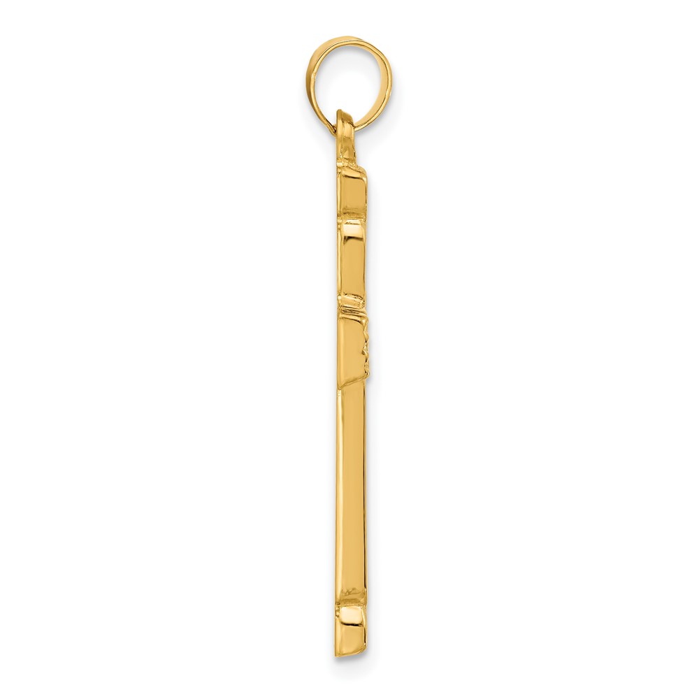 14k Polished and Grooved Hollow Cross Pendant