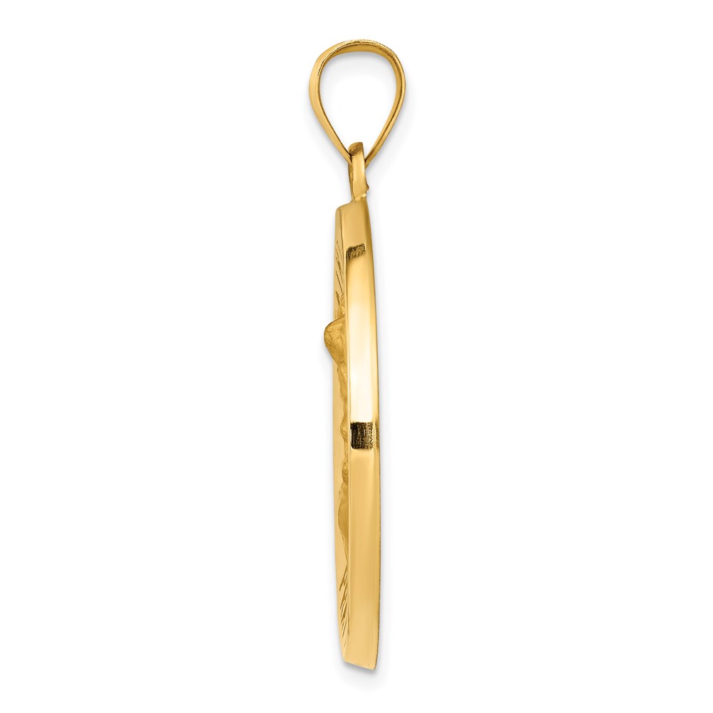 14k Polished and Satin Hollow Large St. Michael Medal Round Pendant