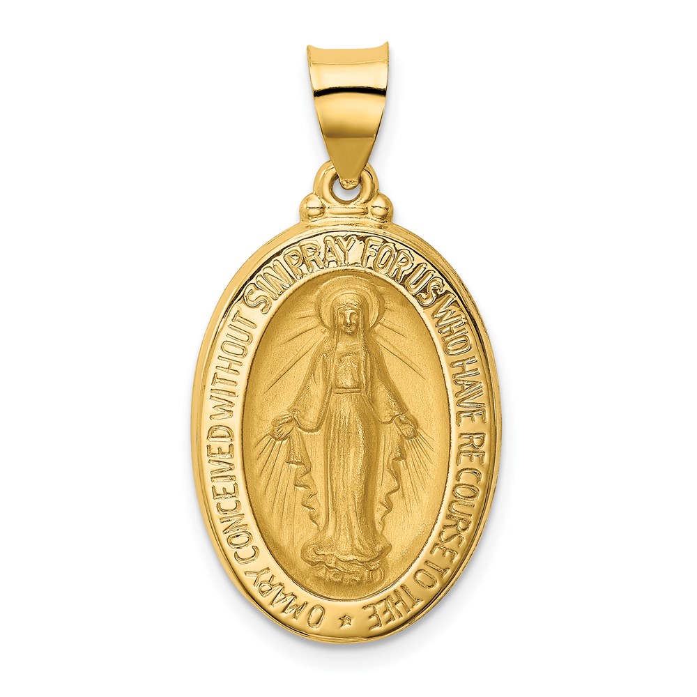 14k Polished and Satin Hollow Miraculous Medal Oval Pendant