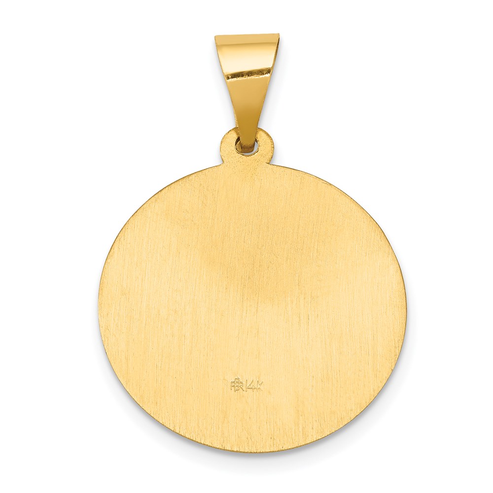 14k Polished and Satin Hollow Saint Gerard Medal Round Pendant