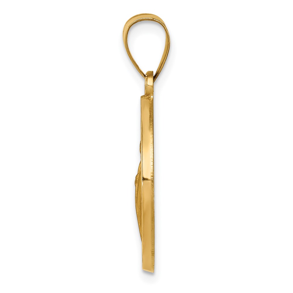 14K Polished and Satin Hollow Spanish San Judas Tadeo Medal Round Pendant