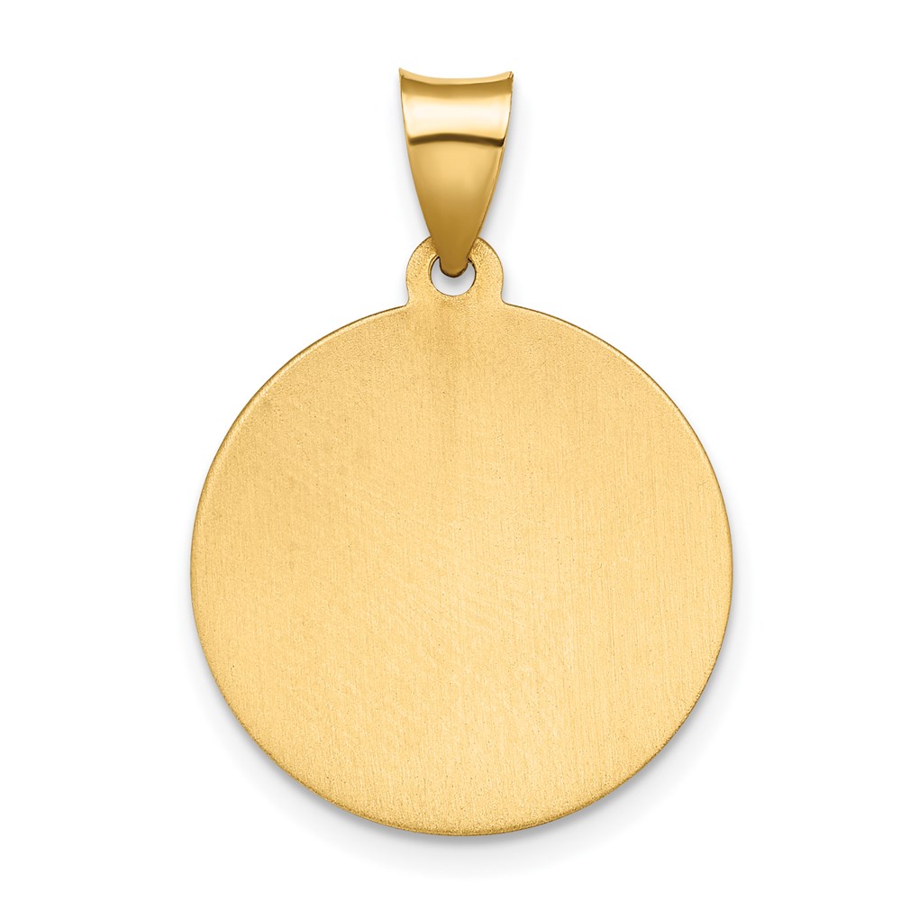 14K Polished and Satin Hollow Spanish Santa Lucia Medal Round Pendant