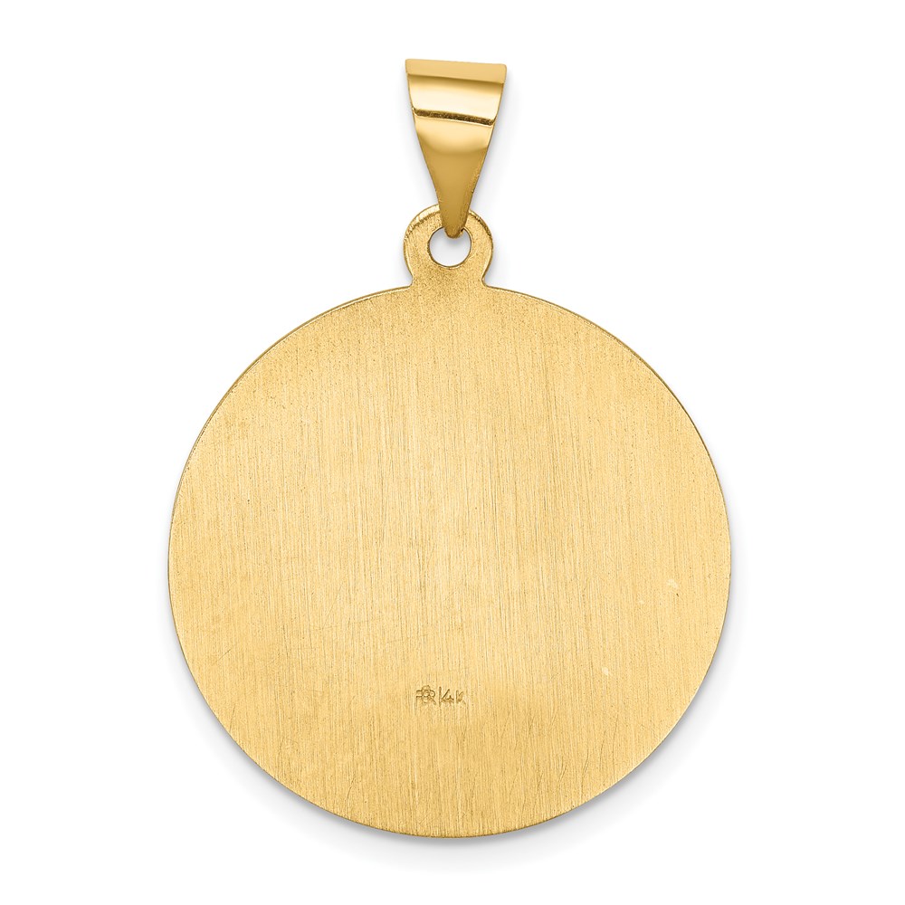 14k Polished and Satin Hollow St Francis Medal Round Pendant
