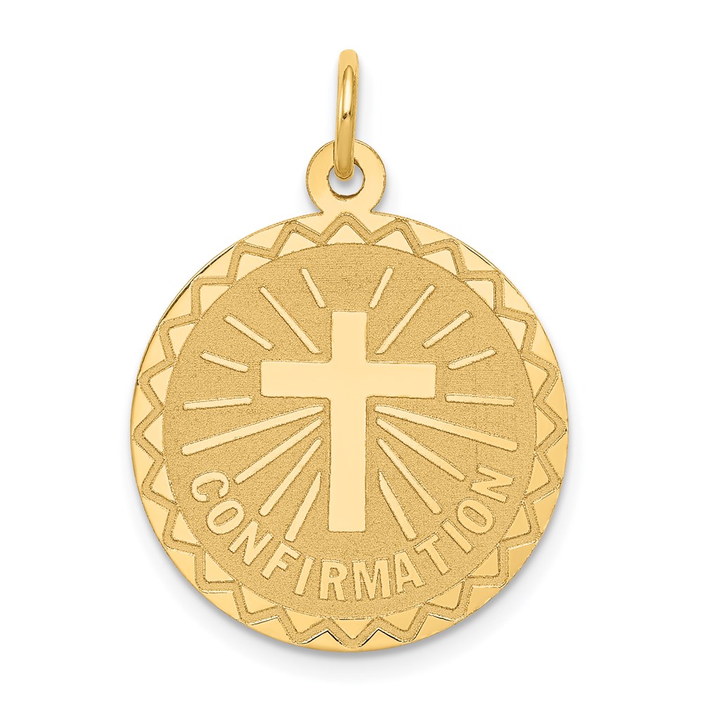 14k Polished and Satin Solid CONFIRMATION with Cross Round Disc Charm