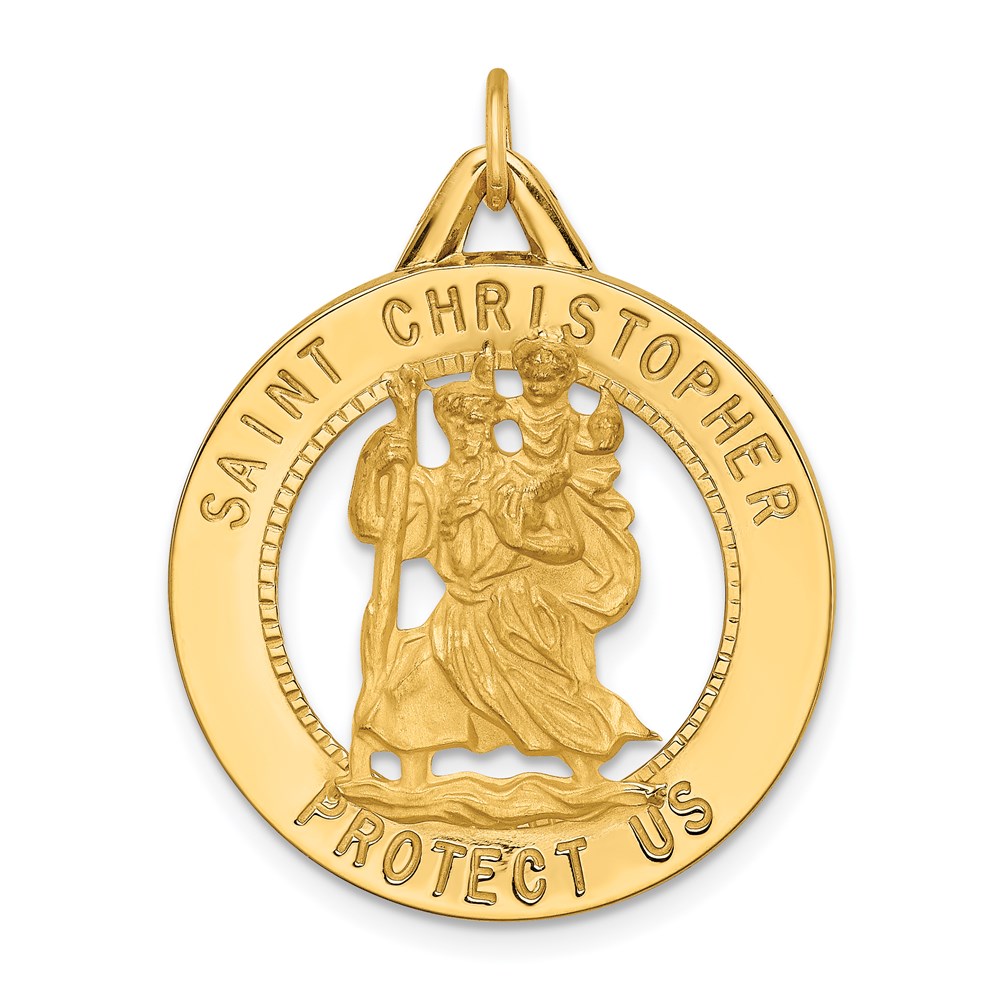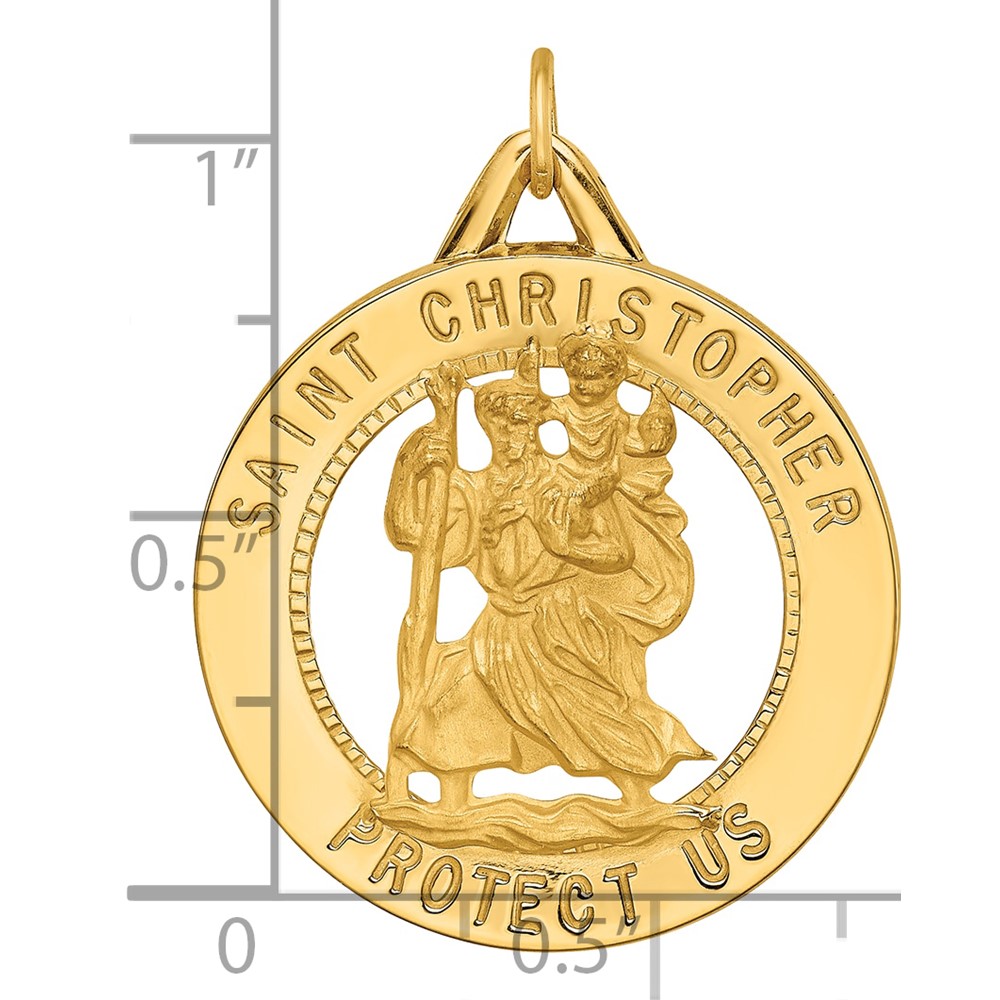 14k Polished and Satin Solid Cut-out St. Christopher Medal Round Pendant