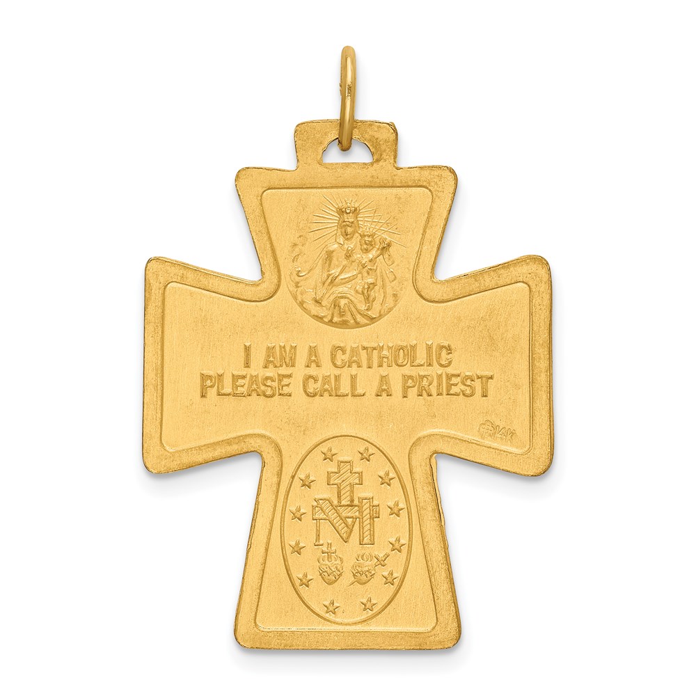 14k Polished and Satin Solid Large 4-Way Medal Cross Pendant