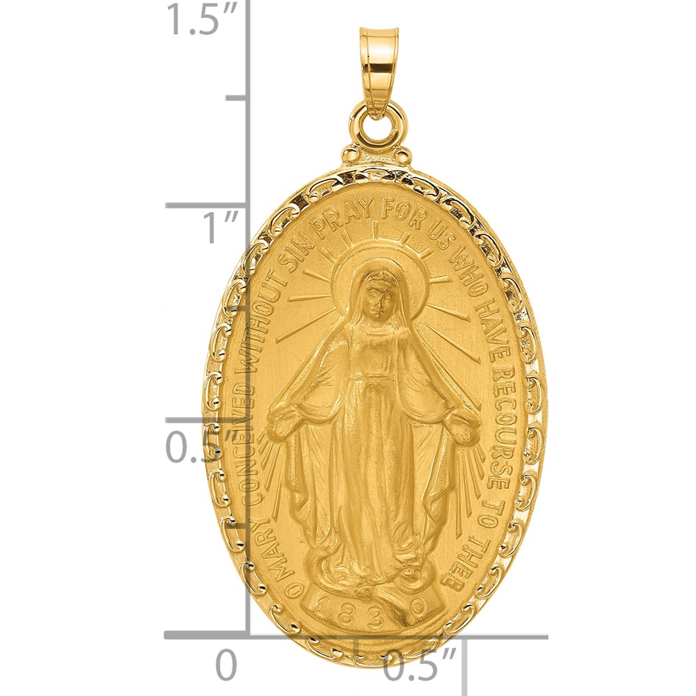 14k Polished and Satin Solid Miraculous Medal Oval Pendant