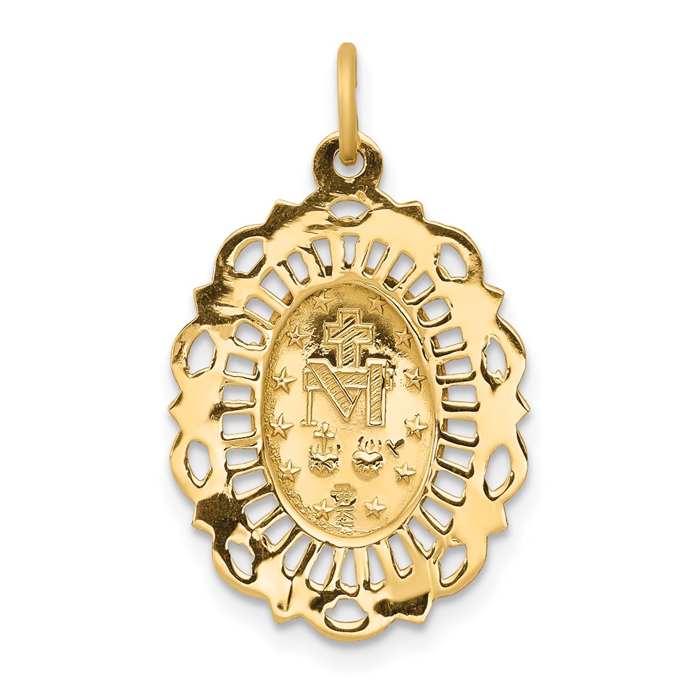 14k Polished and Satin Solid Miraculous Medal Scalloped Edge Oval Pendant