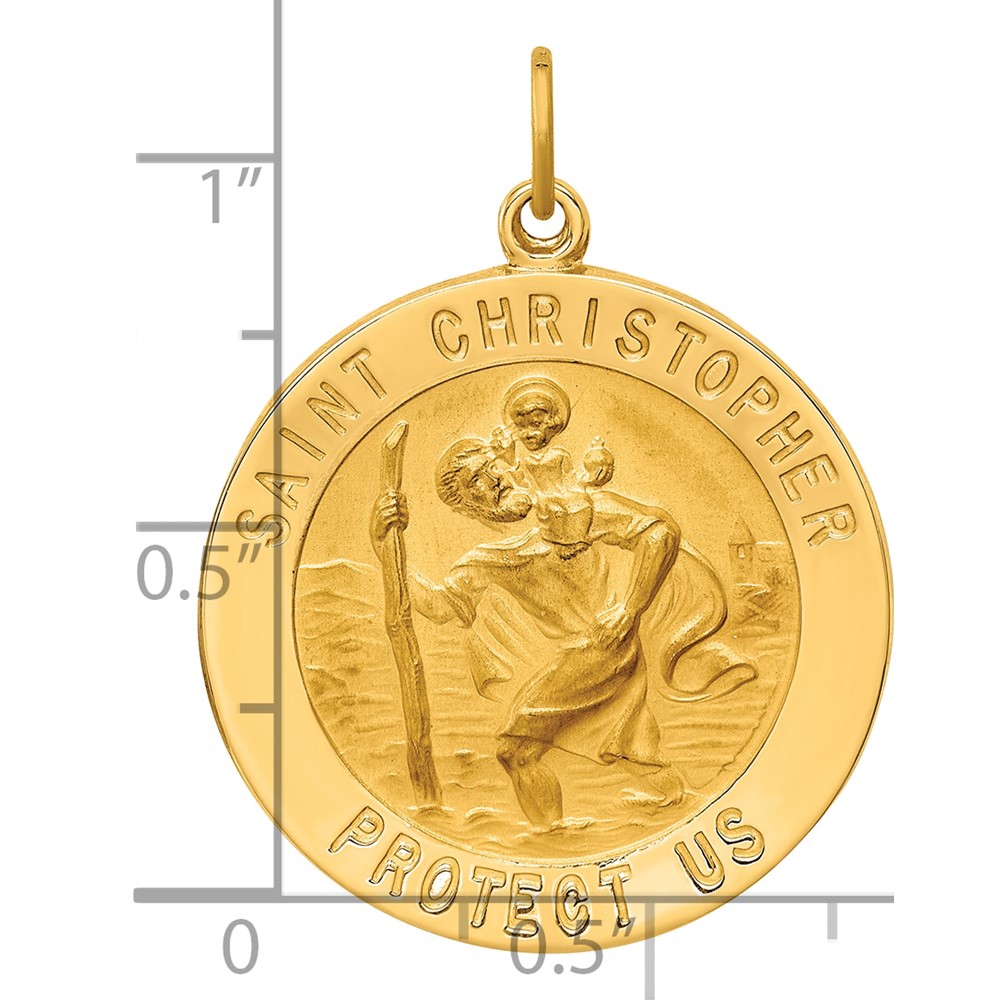 14k Polished and Satin Solid St. Christopher Medal Round Pendant