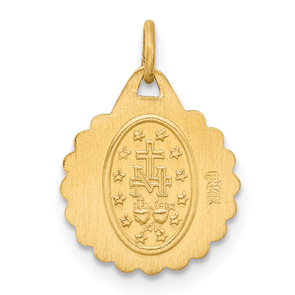 14k Polished and Satin Solid Tiny Round Scalloped Miraculous Medal Charm
