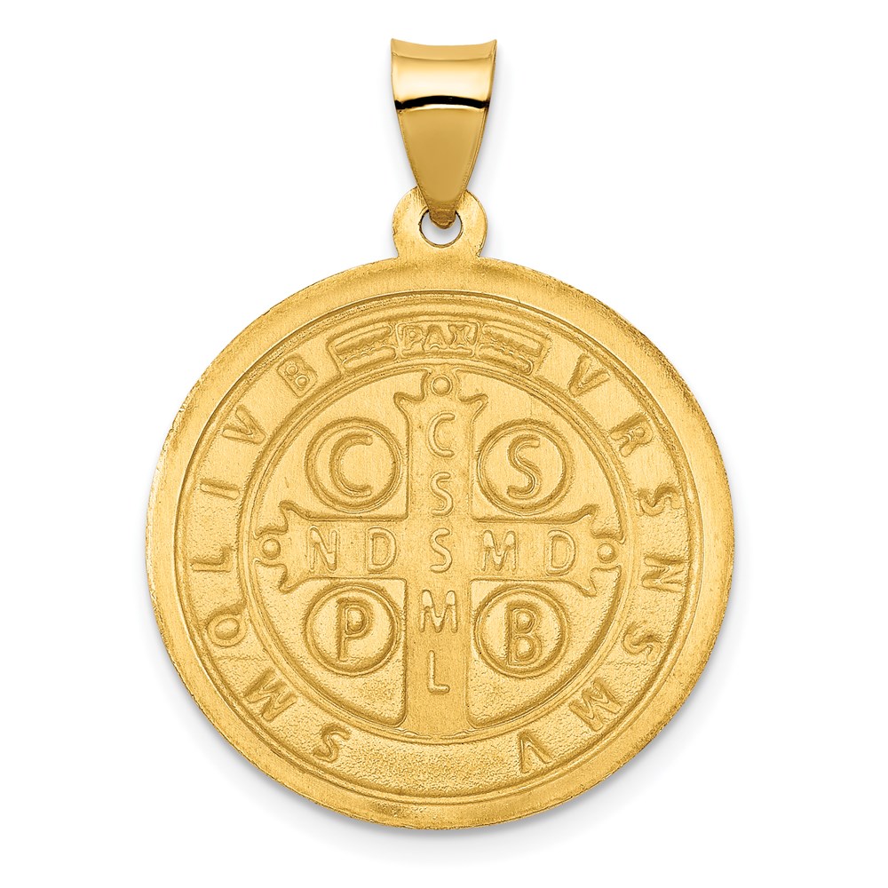 14K Polished and Satin St. Benedict Reversible Hollow Medal Pendant