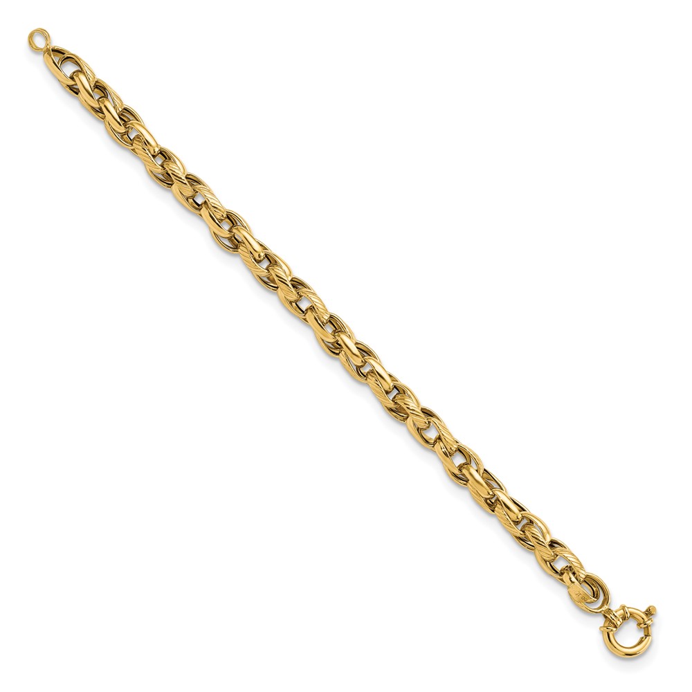 14k Polished and Textured Link 7.5in Bracelet