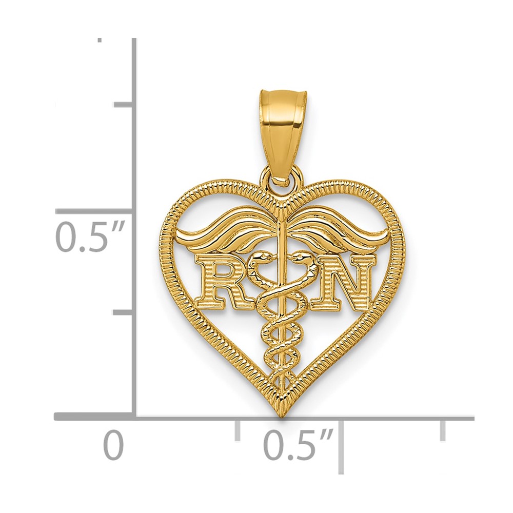14k Polished And Textured RN Symbol in Open Heart Pendant