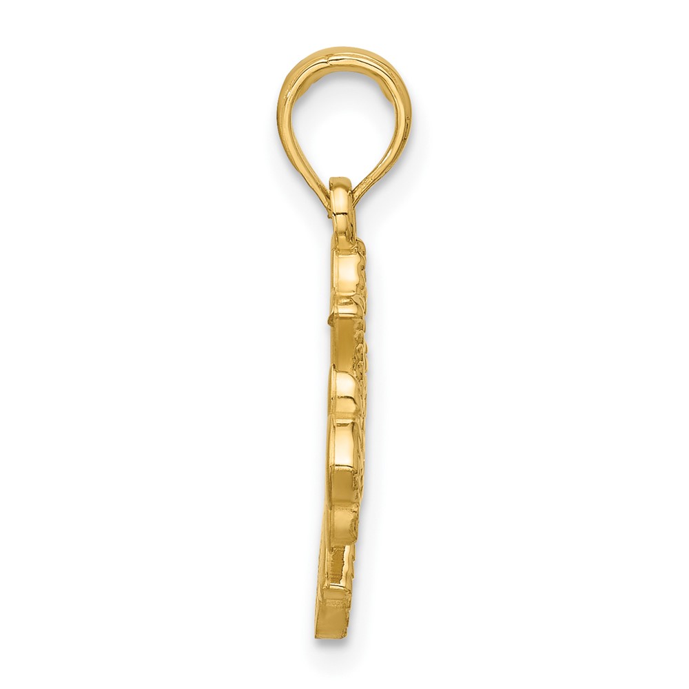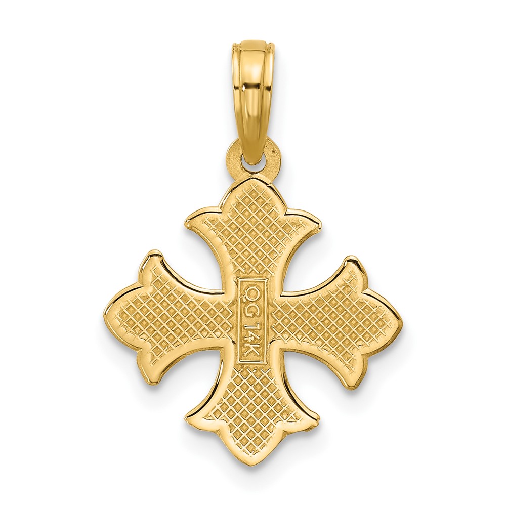 14K Polished Beaded Fleur de Lis Cross Pendant