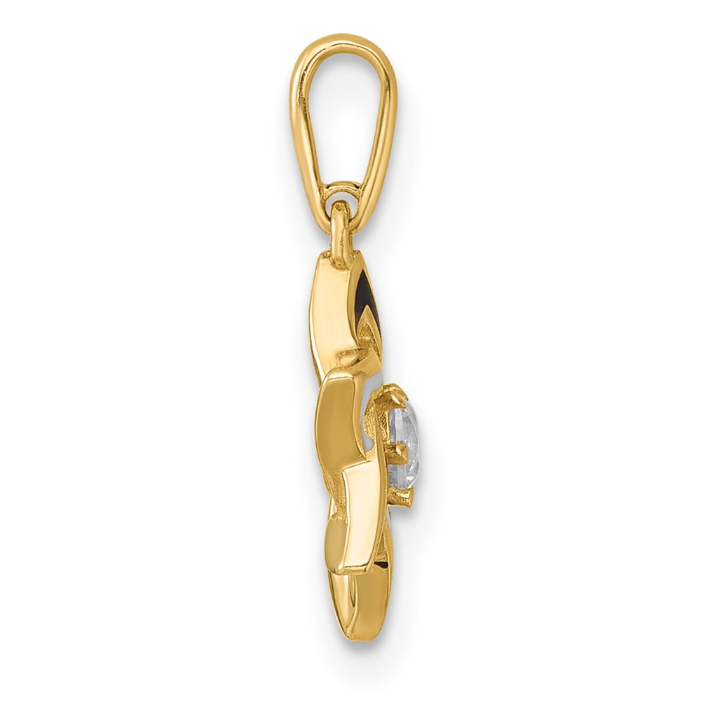 14k Polished Black and White Enameled and CZ Star of David Charm / Pendant
