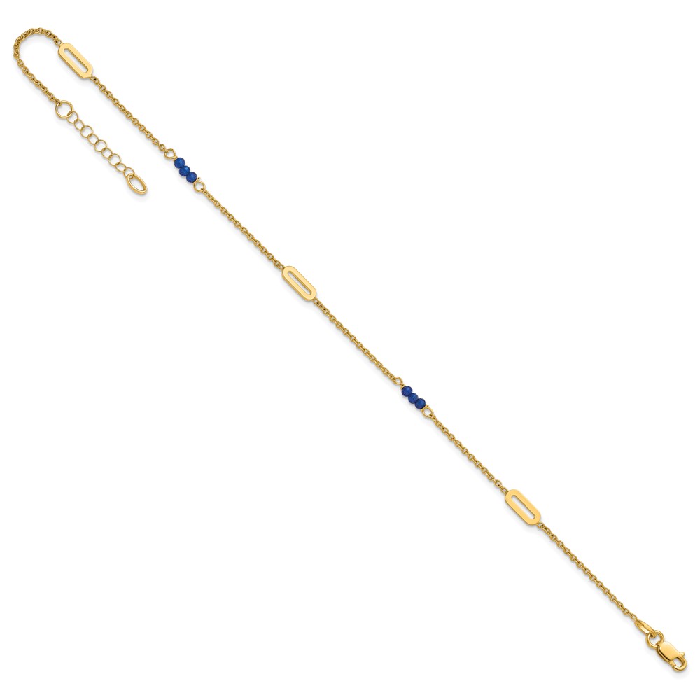 14k Polished Blue Spinel Beads and Squares Plus Extender – Total Anklet