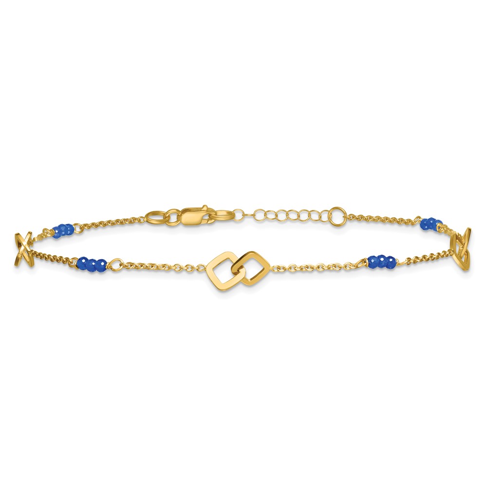 14k Polished Blue Spinel Beads and Squares Plus Extender – Total Anklet