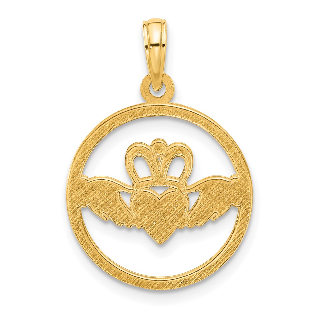 14k Polished Circle Claddagh Pendant