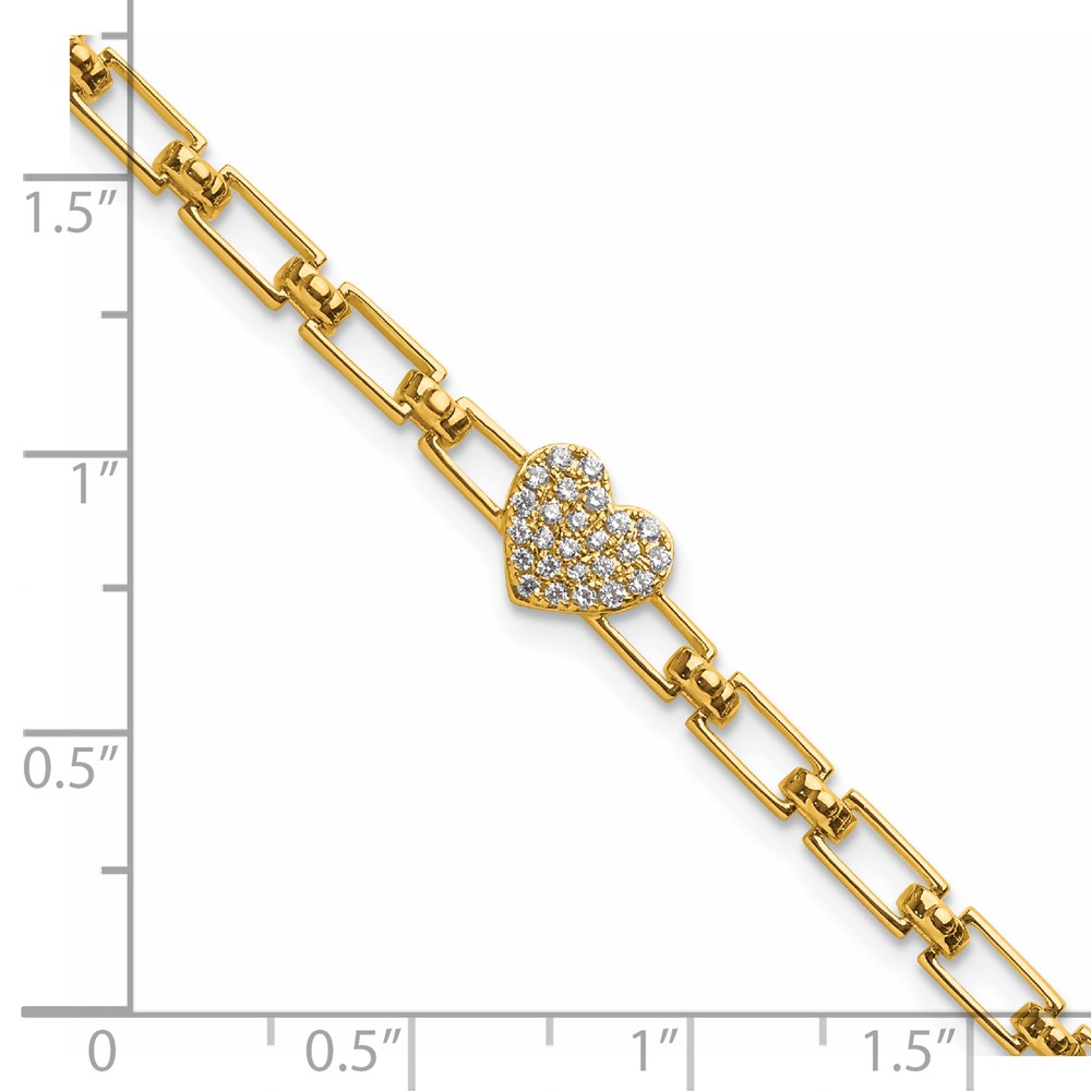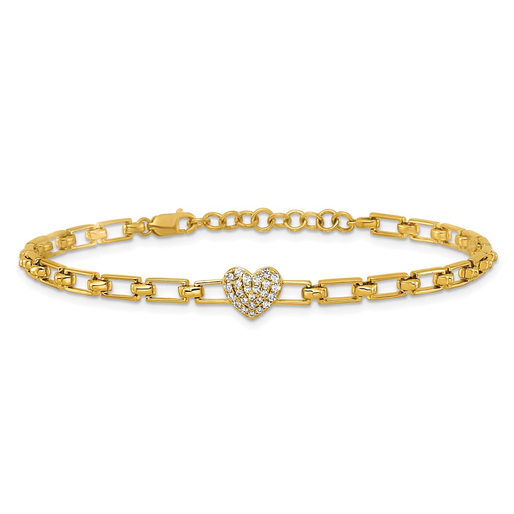 14K Polished Complete 1/6 carat Diamond Heart Cluster Fancy Link 7 inch Bracelet with 1 inch Extender