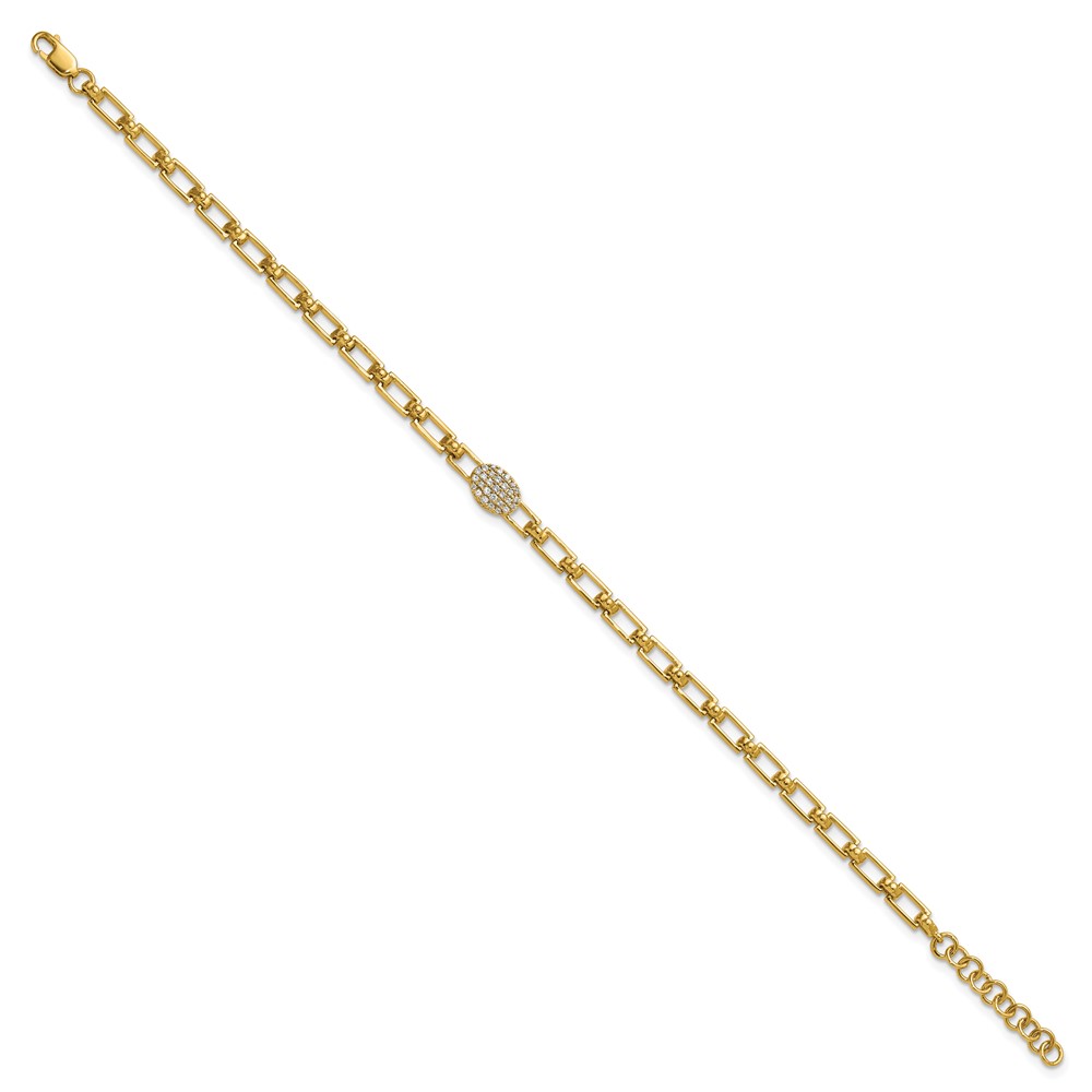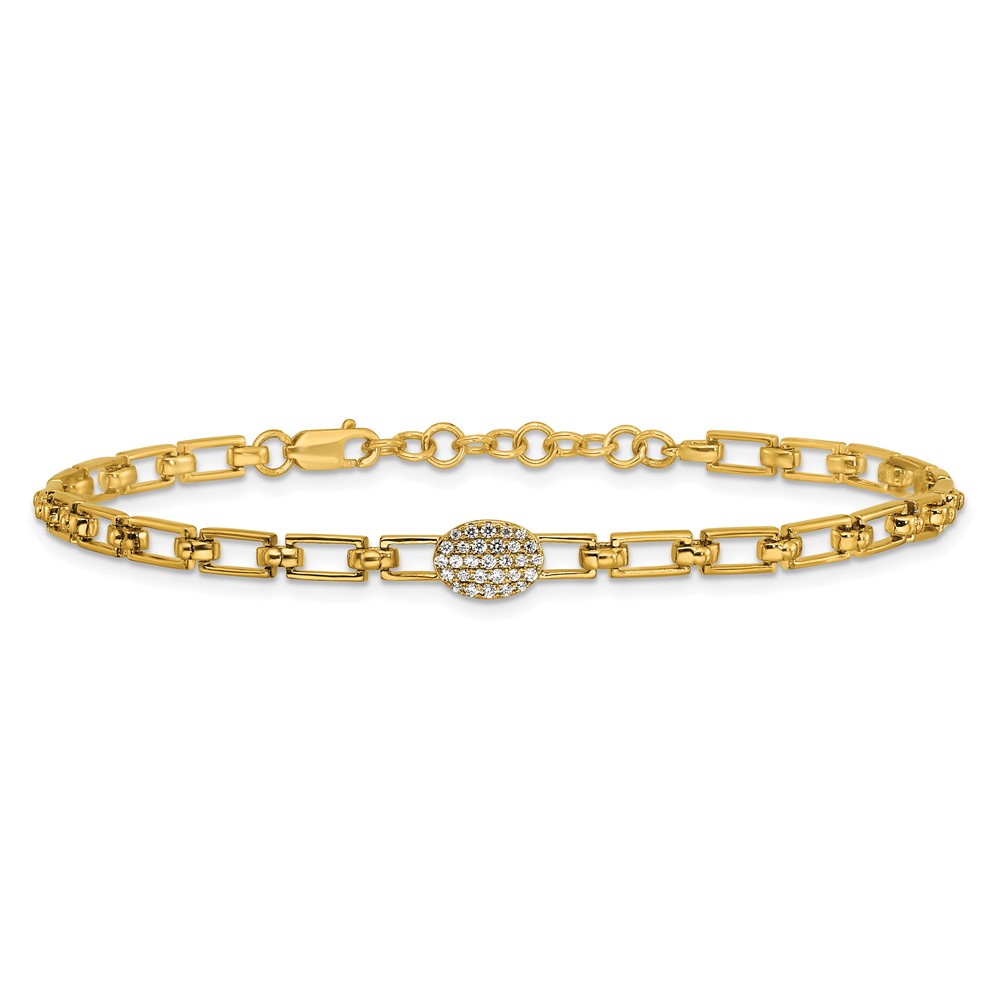 14K Polished Complete 1/8 carat Diamond Oval Cluster Fancy Link 7 inch Bracelet with 1 inch Extender