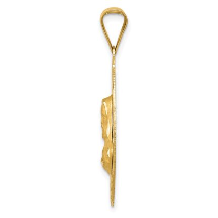 14K Polished Diamond-cut Solid Sagrado Corazon de Jesus Round Pendant