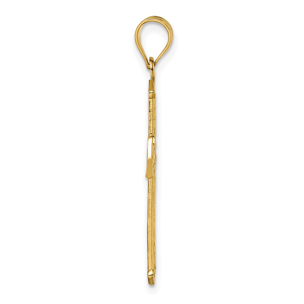 14k Polished Diamond-cut Textured Fancy Pierced Design Cross Pendant