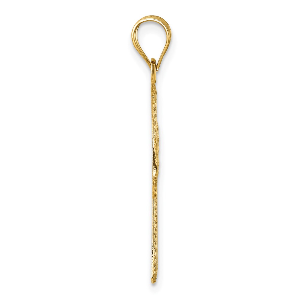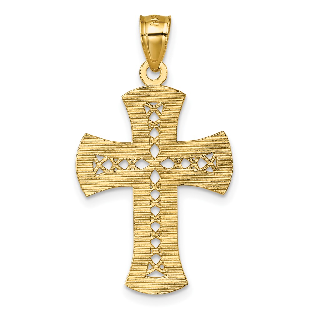 14k Polished Diamond-cut Textured Fancy Pierced Lattice Design Cross Pendant