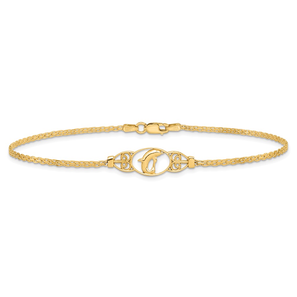 10k Polished Dolphin Charm Plus Extender – Total Anklet