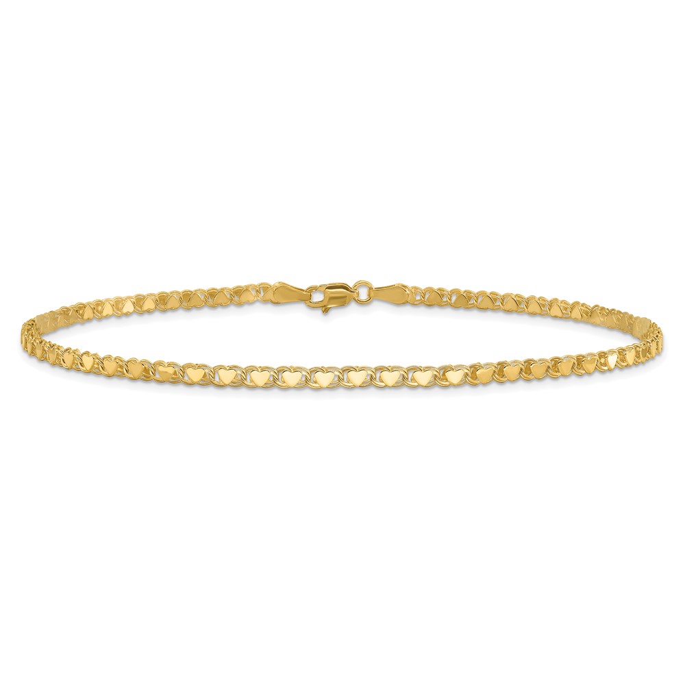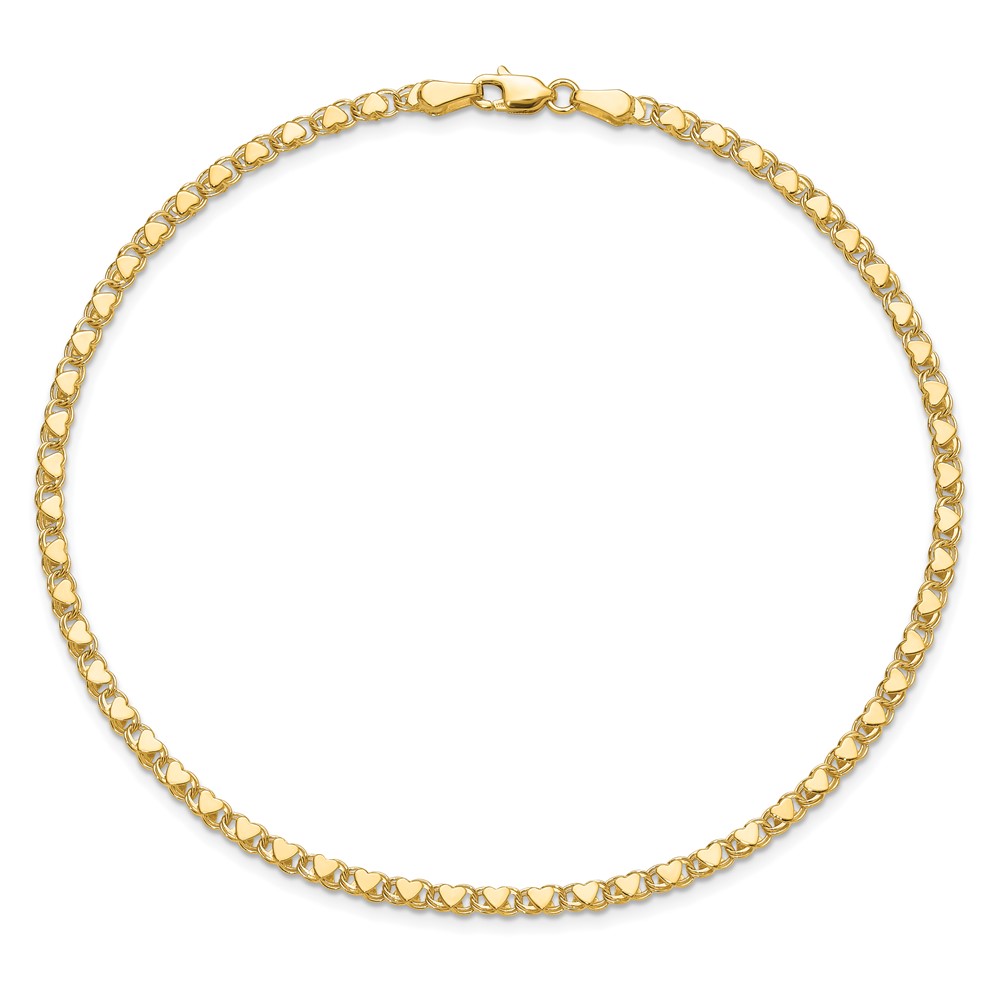 14k Polished Double-Sided Hearts Double Link Anklet